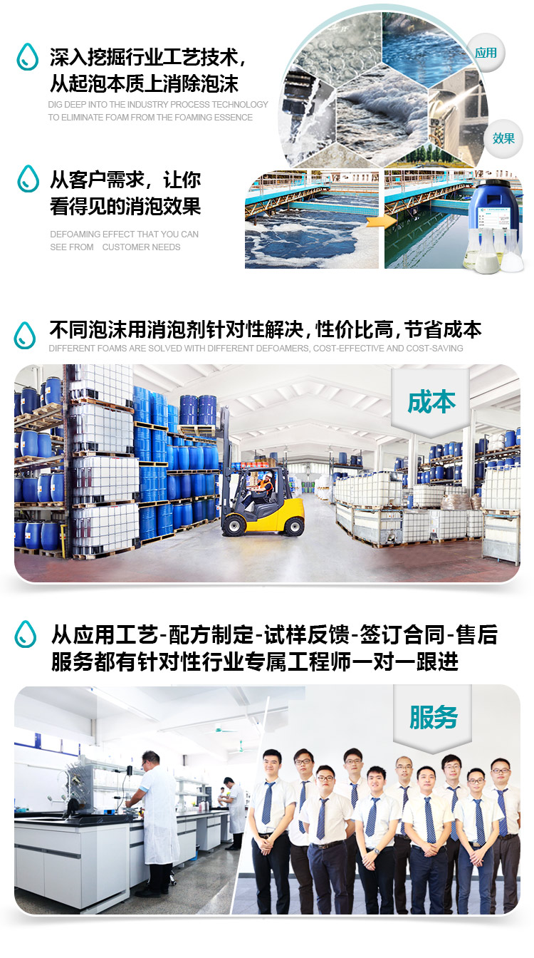 中萬是一家以解決各行業泡沫難題為使命的企業,專注于各行業不同工藝的泡沫應用研究,擁有8大體系成分產品,近2000個不同行業、不同細分領域工藝的成功應用經驗與解決方案,為您的生產工藝保駕護航。中萬在化工泡沫領域扮演著重要的角色,從嚴謹的選料到獨特的應用方案,推動著整個消泡劑行業的優化升級,中萬因領先而備受推崇,用技術成就高效,提方案帶來卓越,讓服務適應市場,中萬在消泡劑精益求精的道路上不斷地為客戶謀發展而開拓創造。